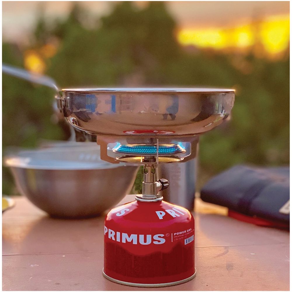 Made from food-grade 18/8 stainless steel these frying pans offer an aluminum bottom to ensure optimum heat distribution while cooking. A large metal handle pivots up and locks when in use and then easily folds away when it’s time to head home.